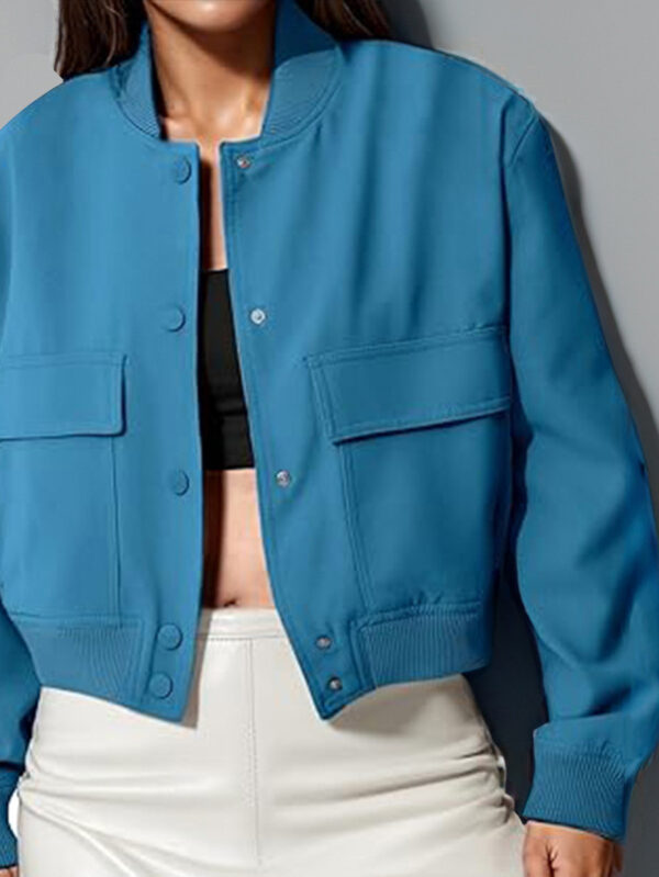 Women’s Button Stand Collar Jacket with Big Pockets – Casual Loose Short Utility Coat