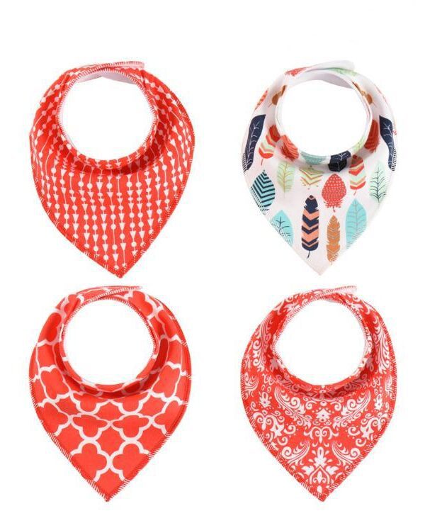 4-Pack Baby Cotton Bandana Bibs & Burp Cloths – Triangle Print Slobber Towels for Infants