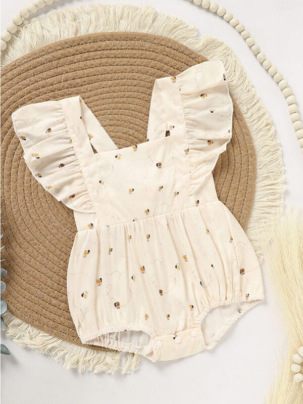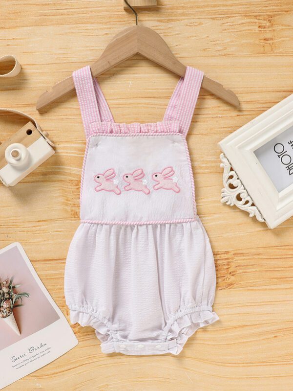Baby Bunny Romper – Ruffle Trim Onesie with Adjustable Straps & Snap Closure for Easter & Spring (0–18M)