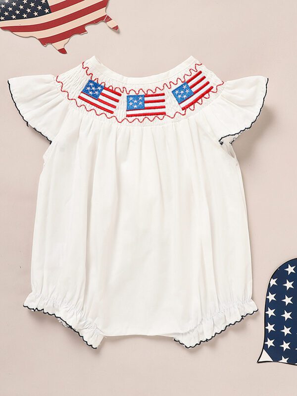 Baby Girl 4th of July Romper – Patriotic Bubble Bodysuit with American Flag Embroidery (0–18M)
