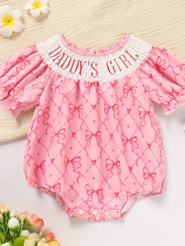 Baby Girl “Daddy’s Girl” Romper – Bowknot Graphic Print Bubble Sleeve Triangle Jumpsuit (0–18M)