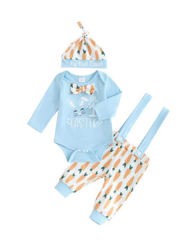 3-Piece Baby Bunny Outfit Set – Long Sleeve Rabbit Romper, Carrot Suspender Pants & Hat (0–18 Months)