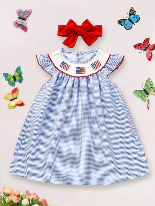 Baby Girl 4th of July Dress – Gingham & Color Block, Patriotic Independence Day Outfit