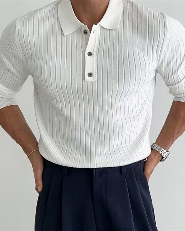Men’s Lapel Button Long Sleeve Polo Shirt – Slim Fit Striped Knitted Top Stylish & Comfortable
