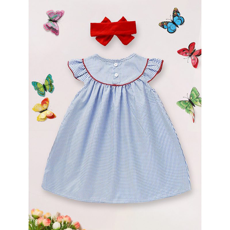 Dress your little star in adorable patriotic style with this charming 4th of July dress! Featuring white and blue gingham with a playful color-block design , this dress is perfect for Independence Day celebrations, family photos, or summer outings. The soft, breathable fabric ensures comfort while your baby twirls in style.