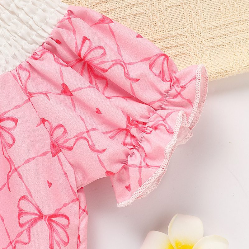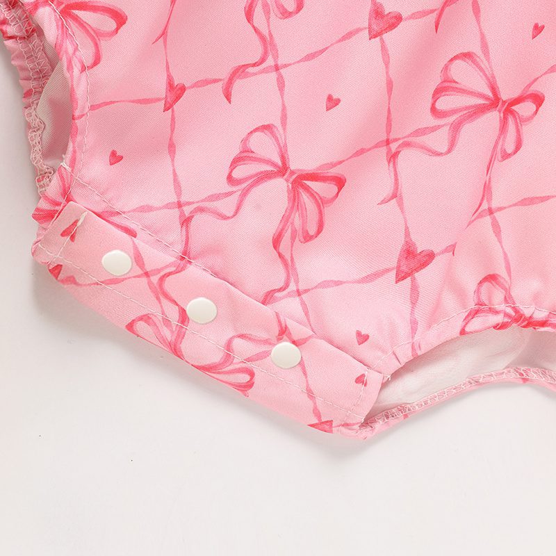 Featuring sweet bowknot graphics, playful letter print, and charming bubble sleeves, this triangle-style romper is perfect for everyday cuteness and special photo moments. Soft, breathable fabric keeps your baby comfortable, while snap closures make diaper changes quick and easy.